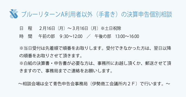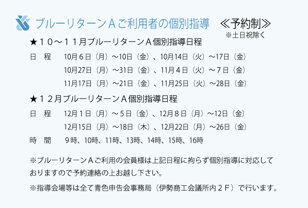 ■ブルーリターンA利用者の決算申告個別相談≪予約制≫