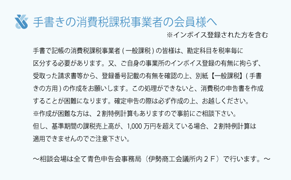 ■手書きの消費税課税事業者の皆様へ